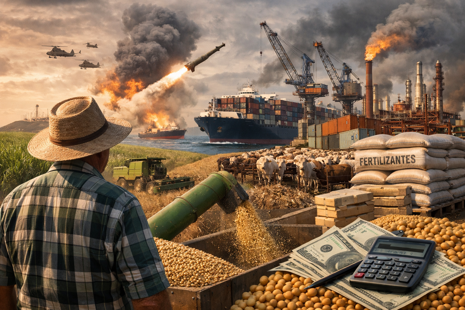 Escalada do conflito pressiona custos de produção, altera exportações e aumenta a volatilidade no campo sul-mato-grossense.