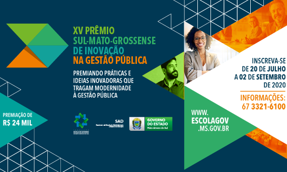 Campo Grande (MS) – Pelo 15º ano consecutivo, o Governo do Estado, por meio da Secretaria de Estado de Administração e Desburocratização (SAD) e Fundação Escola de Governo de Mato Grosso do Sul (Escolagov), realiza o Prêmio Sul-mato-grossense de Inovação na Gestão Pública.